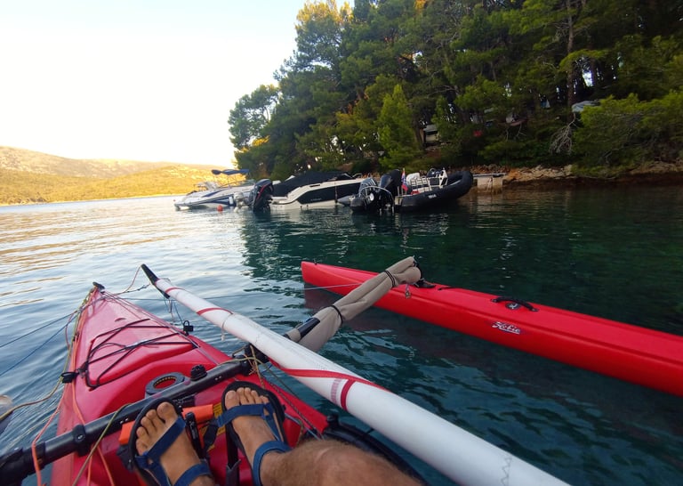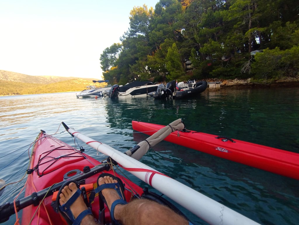 I use pedal and rowing kayaks, Hobie trimarans with sails and pedals, and a small sailing boat.